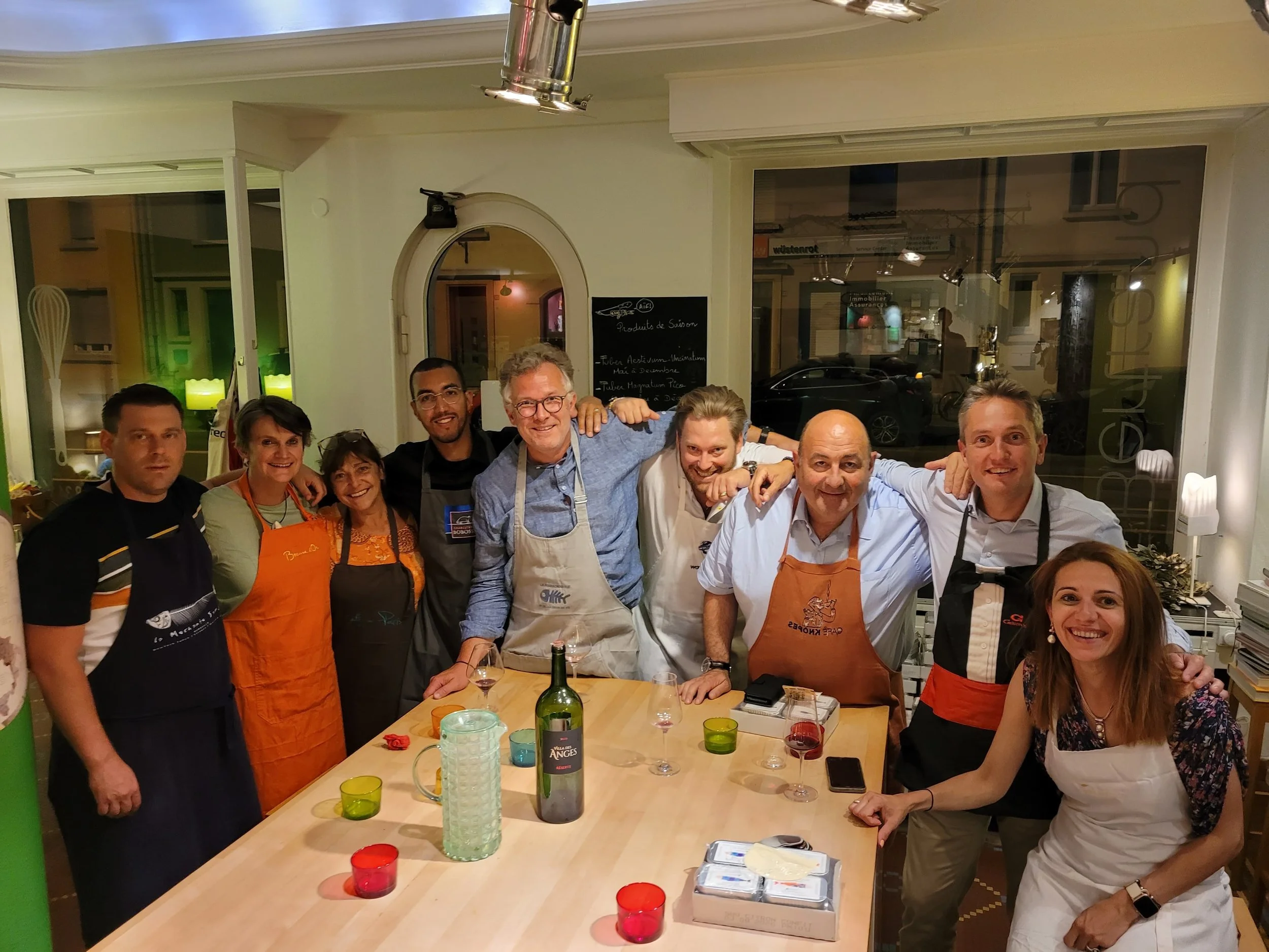 The Atelier's cuisine calls upon qualities other than those expected in your professional environment. Team spirit takes precedence over individualism; nervousness gives way to good humor and relaxation. The Atelier offers companies unique experiences of conviviality and sharing. During a class, tongues are loosened, stress is relieved, bonds are formed, and memories are created. We eat, drink, talk, and laugh. Many companies call on L'Atelier to offer their employees an experience whose benefits last well beyond the classes.
